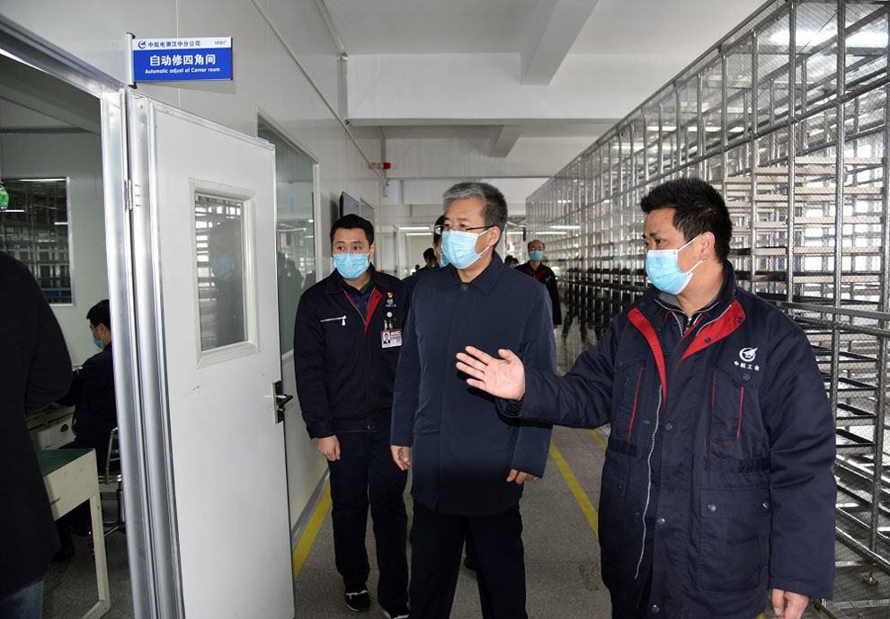 日前,漢中市委常委、漢中市常務(wù)副市長陳曉勇,漢中經(jīng)濟(jì)技術(shù)開發(fā)區(qū)黨工委副書記、管委會常務(wù)副主任汪瑞亭一行5人來中航電測漢中分公司新區(qū)廠區(qū)調(diào)研視察企業(yè)復(fù)工復(fù)產(chǎn)及疫情防控情況,分公司總經(jīng)理胡陽林、副總經(jīng)理呂公潤等領(lǐng)導(dǎo)陪同。
